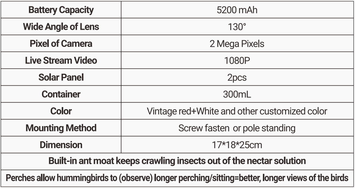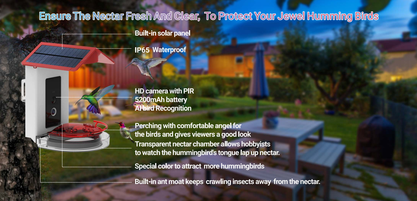 ShenZhen Nanxin Technology Co., Ltd revamped hummingbird watching with professional Hummingbird Feeder. This game-changing product includes a high-definition camera and motion sensor that allow you to livestream feedings straight to your phone with the help of the Bird Lover App. The product even includes a speaker that you can use to scare away squirrels and other pests that might prevent you from attracting hummingbirds. The attached ant moat, seed tray, and nectar tray make this feeder particularly useful for hungry birds.